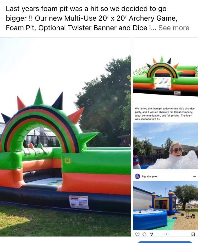 Reserve a foam party for memorable, splash-free fun. Send event details and desired date. We’ll confirm availability and provide a clear quote. Add the 20x20 Twister Foam Pit to upgrade any celebration.